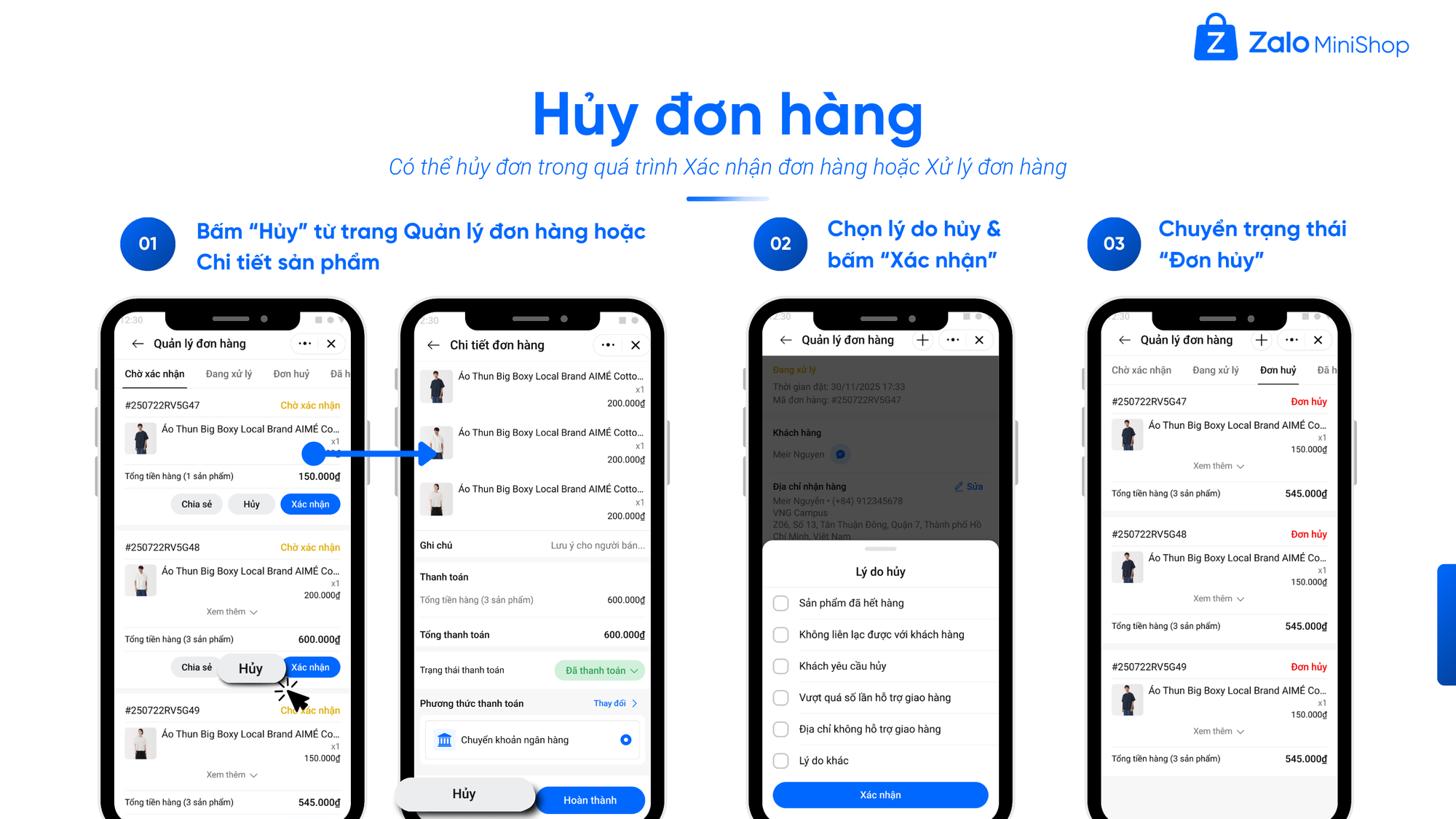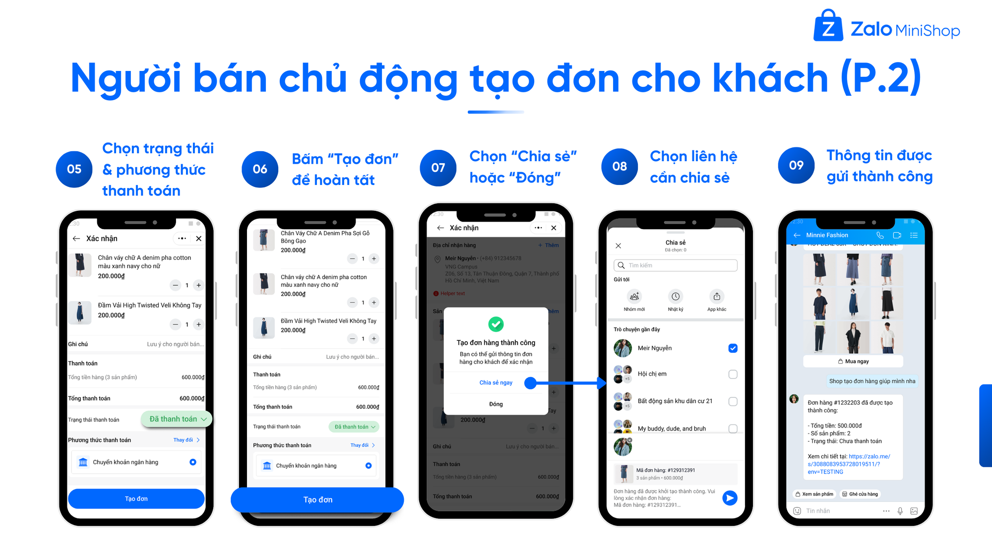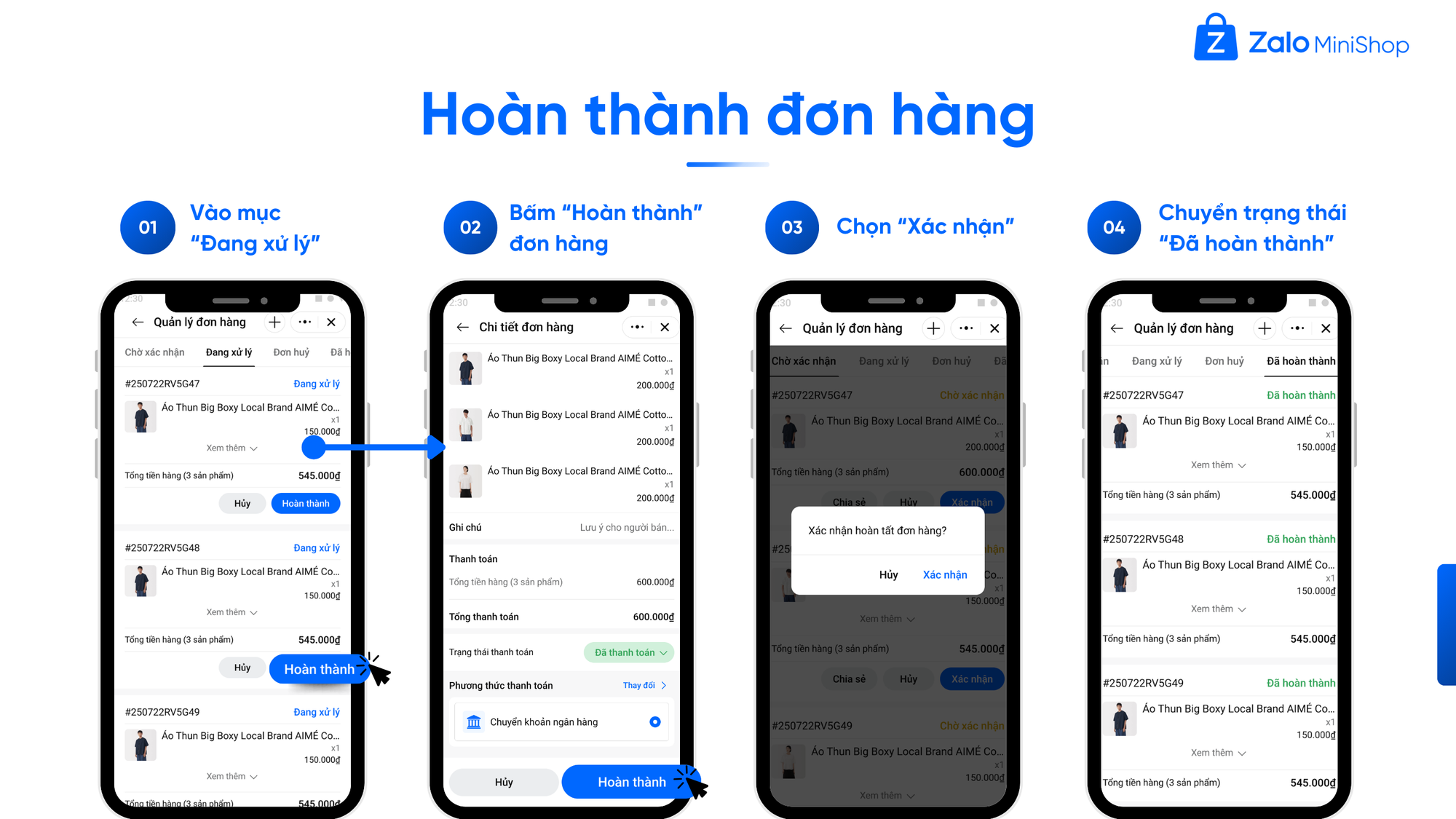 - Thường xuyên kiểm tra thông báo OA Zalo Mini Shop để không bỏ lỡ đơn mới.